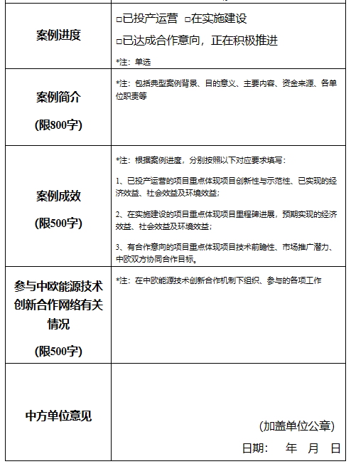(二)典型案例为中欧双方企业在中国境内共同实施的能源项目,以及中欧双方机构在能源领域开展的联合研发与技术合作;