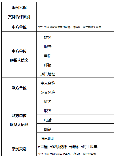(一)典型案例重点征集氢能、智慧能源、储能、海上风电等中欧双方共同关注的清洁能源领域项目;