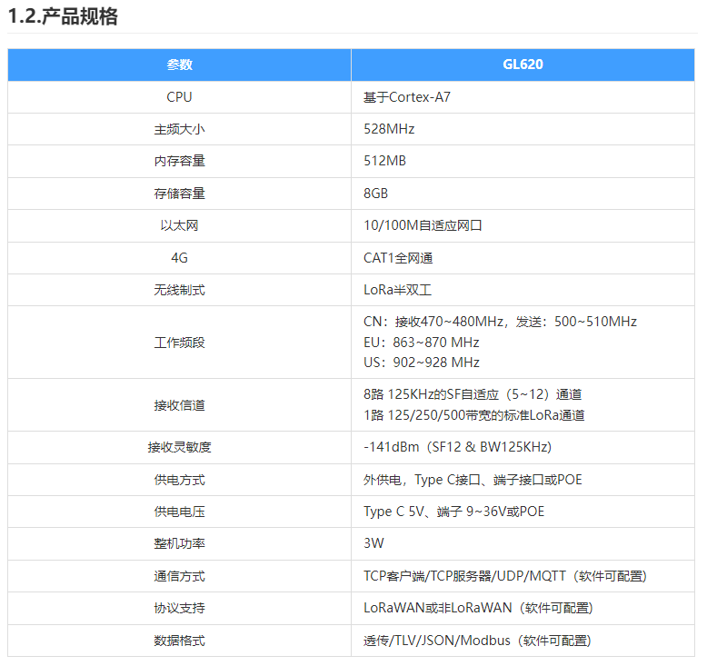 无线性能:如8路125KHz接收通道,可同时接收来自 SX127x或 SX126x 系列芯片信号;每个接收通道可解 SF5~SF12 信号等,在此不多赘述。