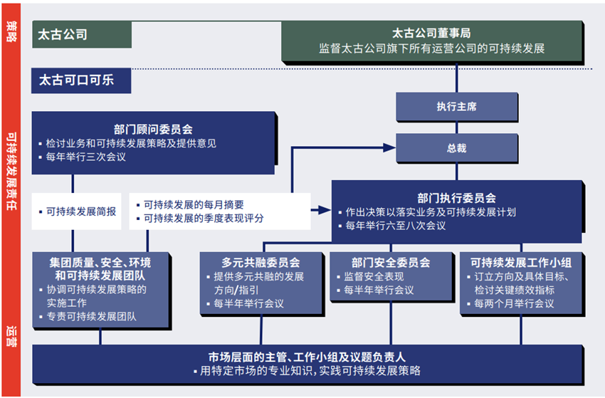 太古可口可乐行政总裁苏薇表示,“可持续发展理念已经融入企业商业战略核心。我们明确自身的行业及社会地位,勇于承担、设定并努力实现具有挑战性的目标,作出正确选择、积极行动,确保我们企业和社会的可持续发展[16] 。”