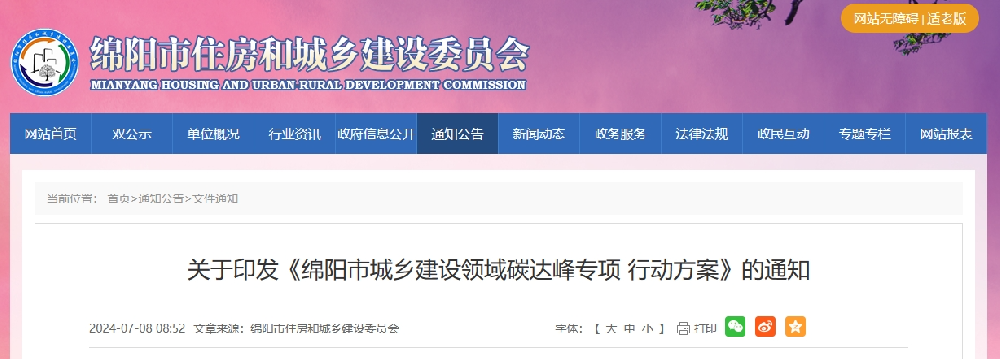 关于印发《绵阳市城乡建设领域碳达峰专项行动方案》的通知