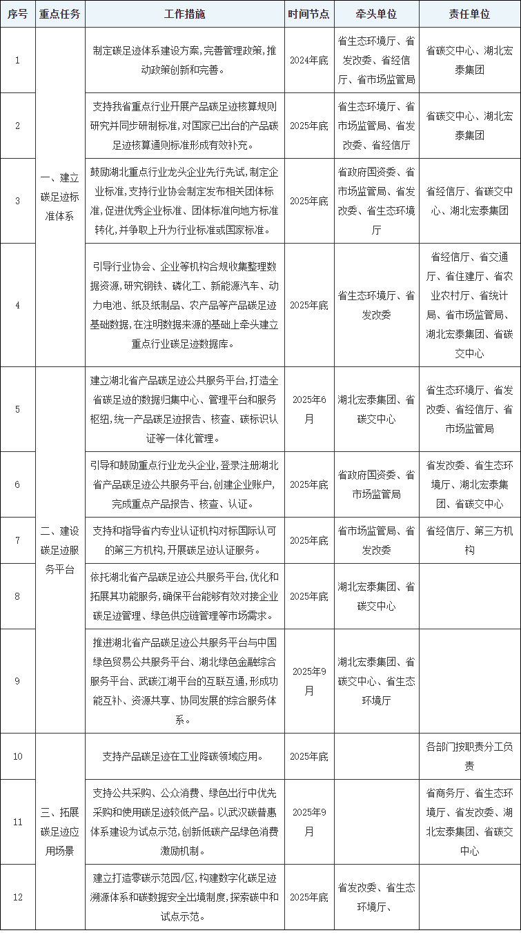 附件:湖北省产品碳足迹体系建设工作任务清单(2024-2025年)