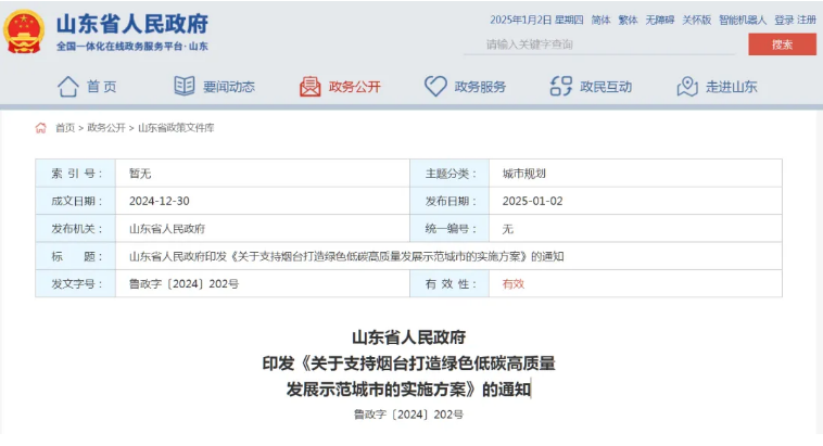 山东省人民政府印发《关于支持烟台打造绿色低碳高质量发展示范城市的实施方案》的通知