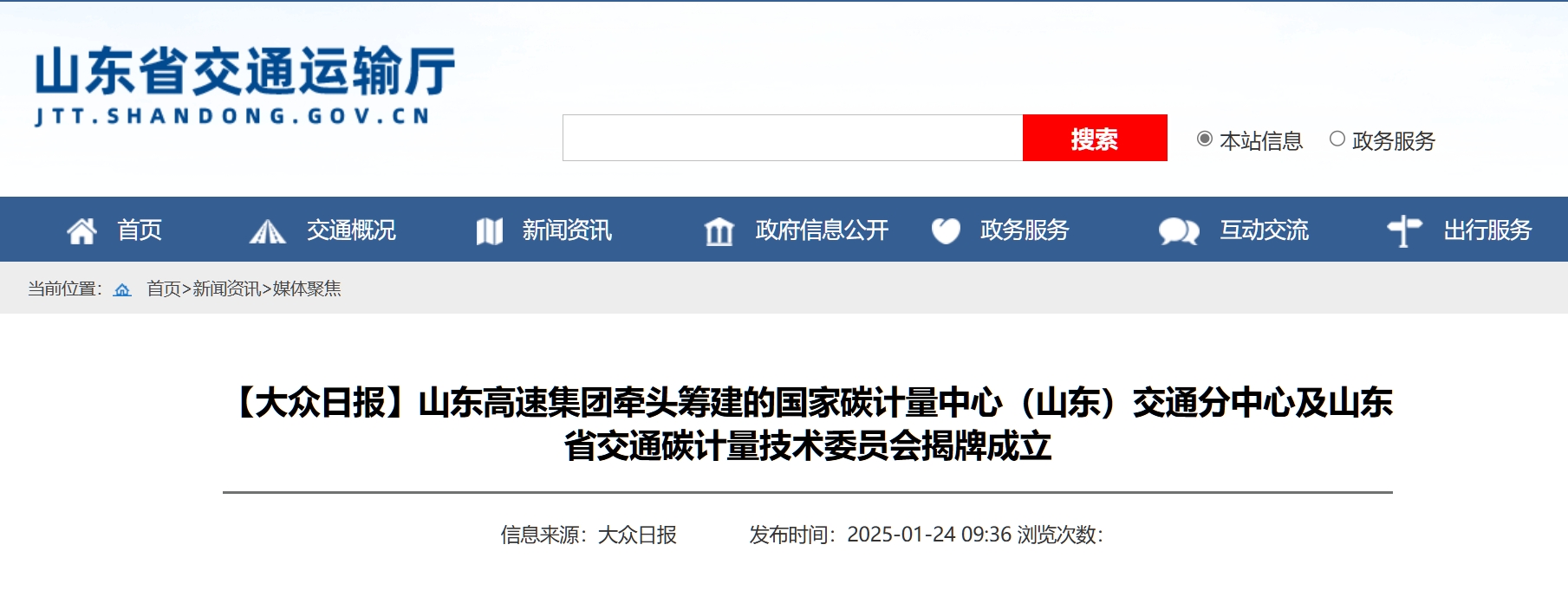 近日,由山东高速集团牵头筹建的国家碳计量中心(山东)交通分中心及山东省交通碳计量技术委员会揭牌成立。据了解,该中心及委员会已正式获得山东省市场监督管理局批复,是全国交通运输领域首个省级碳计量中心和技术委员会。