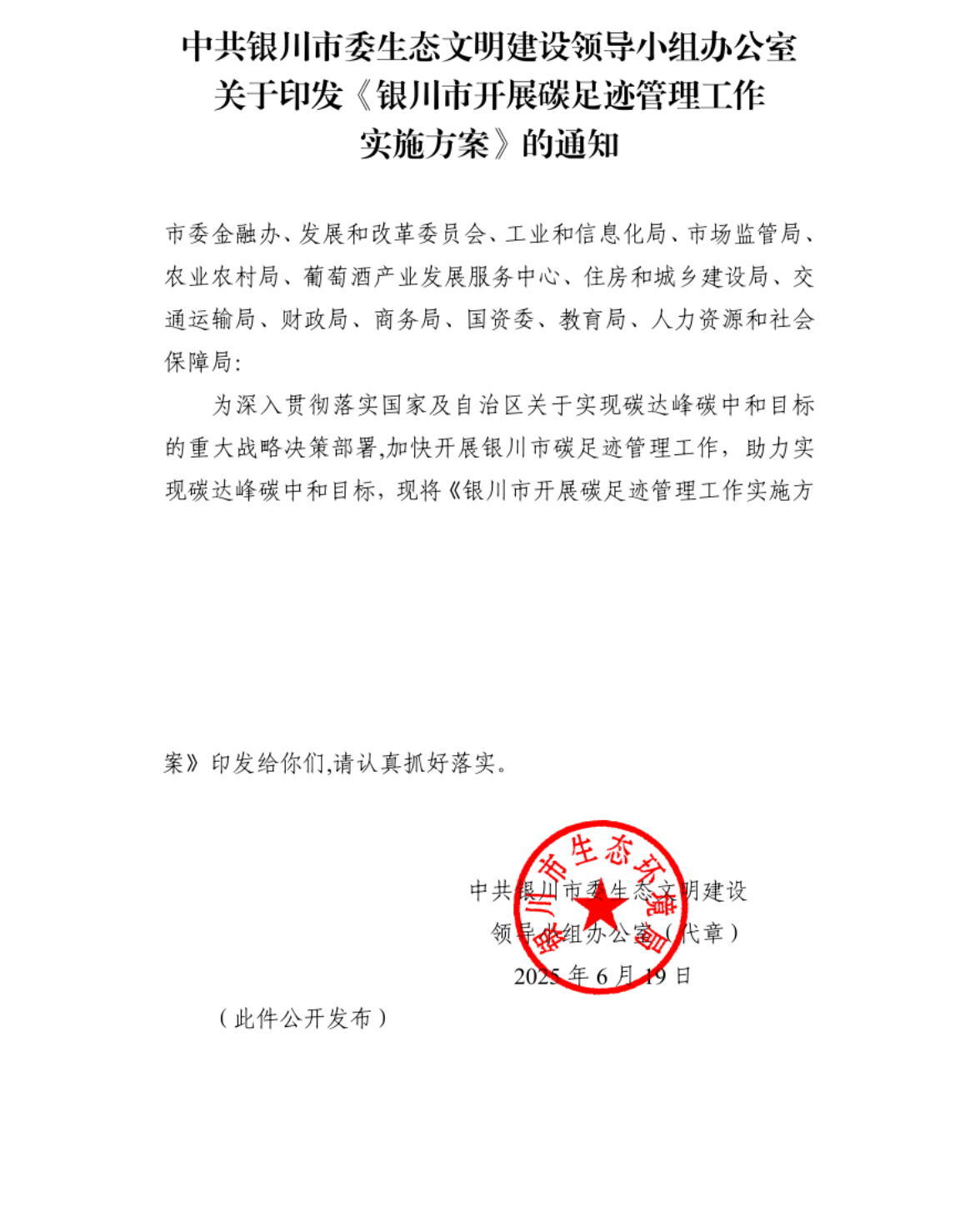 为深入贯彻国家及自治区关于实现碳达峰碳中和目标的重大战略决策部署,近日,银川市正式印发《银川市开展碳足迹管理工作实施方案》,为全市绿色低碳发展勾勒出清晰路径,助力“双碳”目标加速落地。