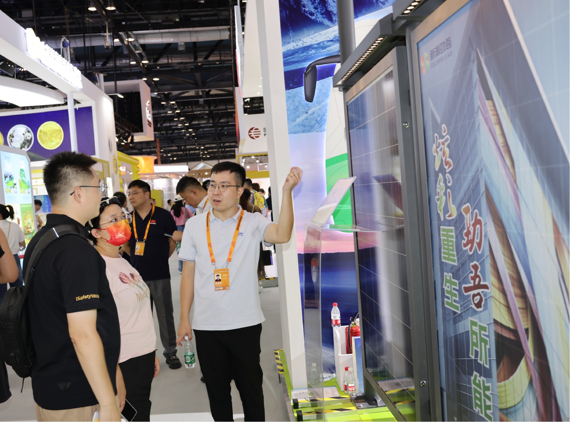 9月3日,在服贸会同期举办的中国电力成果发布会上,新源劲吾以“炫彩重生 劲吾所能”为主题,展示了基于全彩微图层技术,利用退役光伏组件创新性开发的“全彩光伏自发电标识标牌”系列产品。新颖的产品与商业模式吸引了不少新能源行业用户和参展客商的关注。