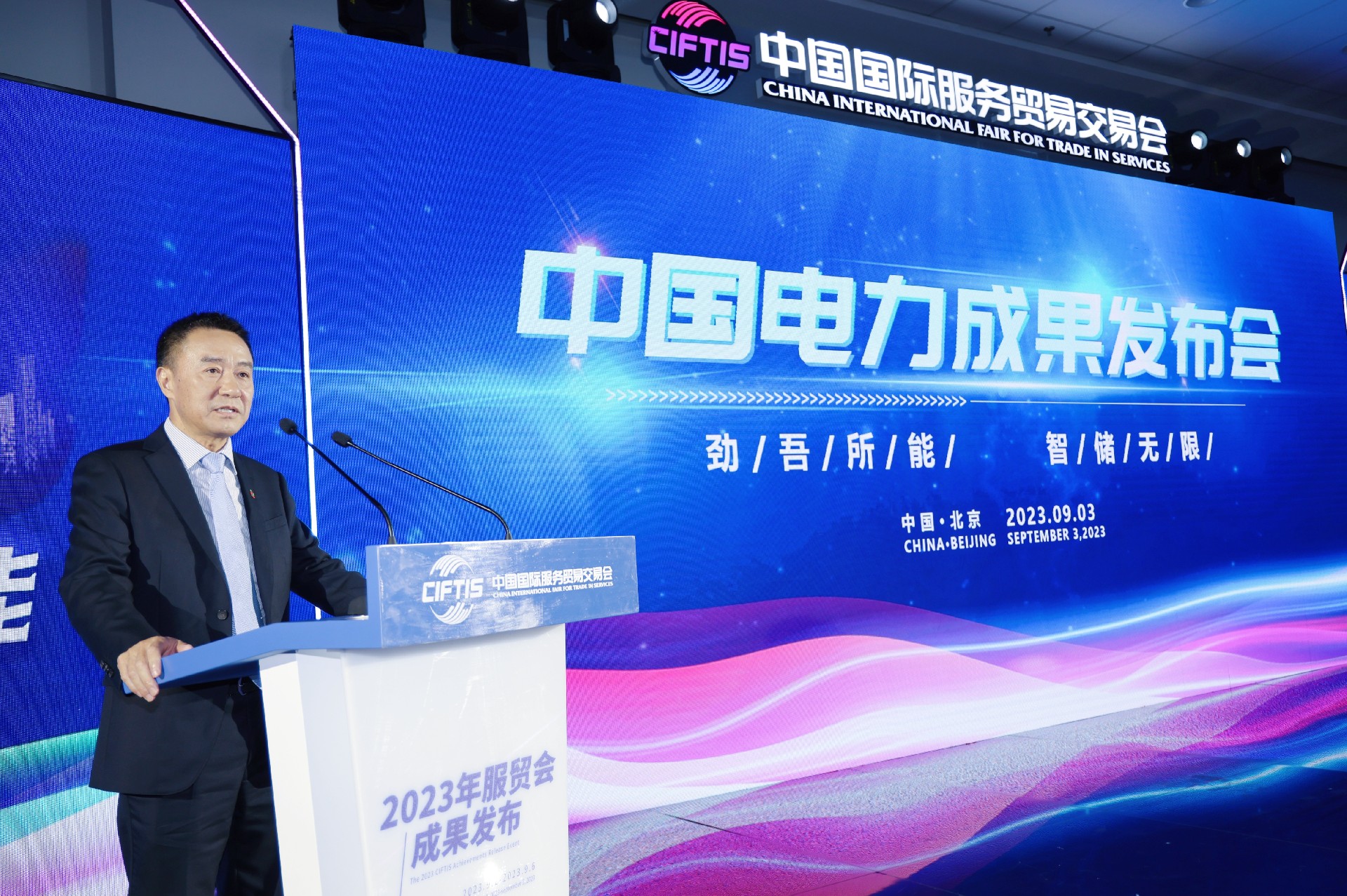 服贸会同期举办的中国电力成果发布会上,中国电力国际发展有限公司董事局主席贺徙致辞。中环报记者王亚京摄