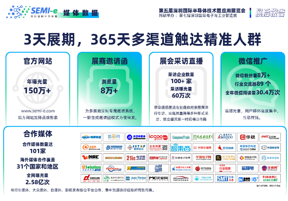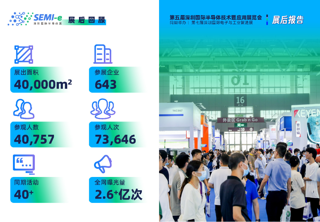深圳国际半导体技术暨应用展览会(展会简称:SEMI-e)是由中国通信工业协会、深圳市半导体行业协会、深圳市中新材会展有限公司、江苏省半导体行业协会、浙江省半导体行业协会、成都市集成电路行业协会等单位联合主办。第六届SEMI-e以【“芯〞中有“算” · 智享未来】为主题,60,000平方米展出面积,800余家展商,预计观众人数达60,000+。本届展会展示以芯片设计及制造、半导体制造、封测、材料和设备、零部件及检测外,突出AI算力、算法、存储、工业控制、汽车智能化、物联网、Ai医疗、教育、智慧能源控制等各种最新应用解决方案。