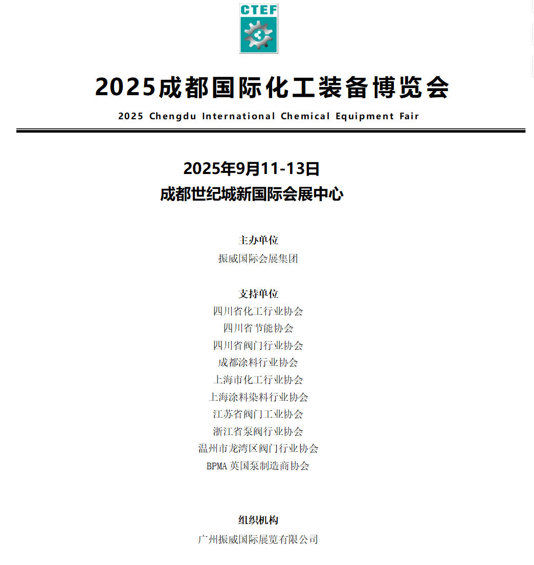 2025成都国际化工装备博览会,与上海国际化工装备博览会品牌一脉相承,将于2025年9月11-13日在成都世纪城新国际会展中心举办,预计参展企业400多家,展览面积30,000平方米,专业观众超过20,000人。展会设置化工单元设备、化工环保设备、泵阀管道、自动化及仪器仪表、实验室仪器及装备、智慧化工园区等专业展区,汇聚各领域的头部企业,展示国内外最新先进技术及设备,可满足化工生产企业一站式采购需求。