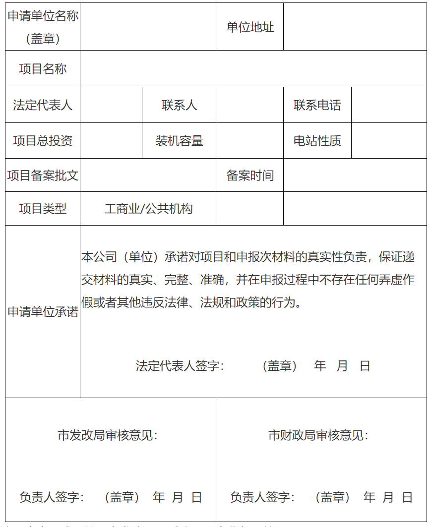 平湖市新一轮分布式光伏发电项目补助资格申请表