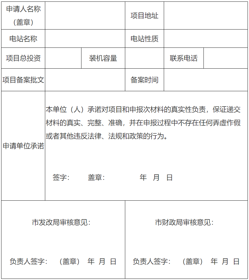 注:本表一式三份,市发改局、财政局和申请人各一份。