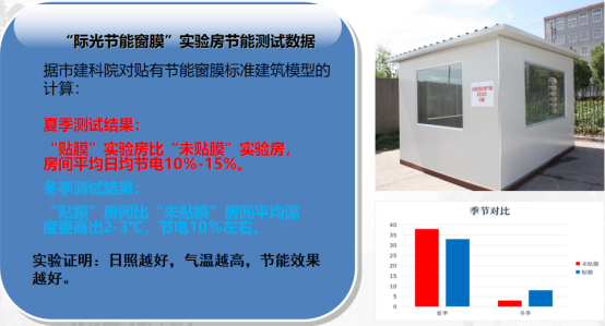 际光节能窗膜是一种利用最新纳米功能材料及磁控溅射的隔热保温特点,实现调控光热量透射及反射特性的节能材料。利用自然环境温度变化就能实现对太阳能的自动调控,达到冬暖夏凉效果。际光隔热节能膜的效果好,而外贴膜技术可减少40%左右的空调制冷负荷,对建筑玻璃门窗的节能贡献十分突出。