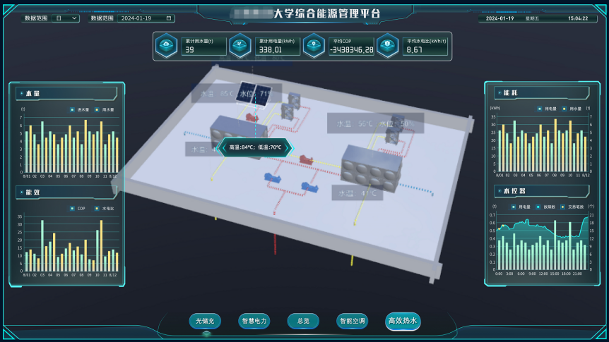 该校搭建了一个高效的热水管理平台,能够实时监控和记录能耗、用水量以及设备运行状态等关键数据。通过这些实时数据,管理人员可以精确地分析热水系统的能效表现,及时发现并解决潜在问题,从而优化能源的使用效率。