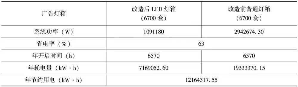 该项目运用广告灯箱(LED)光能高效利用技术对广州市地下铁道总公司广告灯箱进行了LED化节能改造,灯箱数量为6700套,节电率达63%。项目合同能源管理期限为5年,年节约电量约1216.43万千瓦时,年节约标准煤约4014吨。