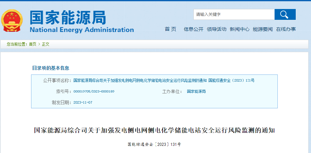 为认真贯彻落实习近平总书记关于安全生产重要指示精神,落实党中央、国务院关于电力安全风险管控有关决策部署,进一步加强电力行业电化学储能电站安全管理,强化发电侧、电网侧电化学储能电站安全运行风险监测及预警,保障电力系统安全稳定运行,现就有关事项通知如下。