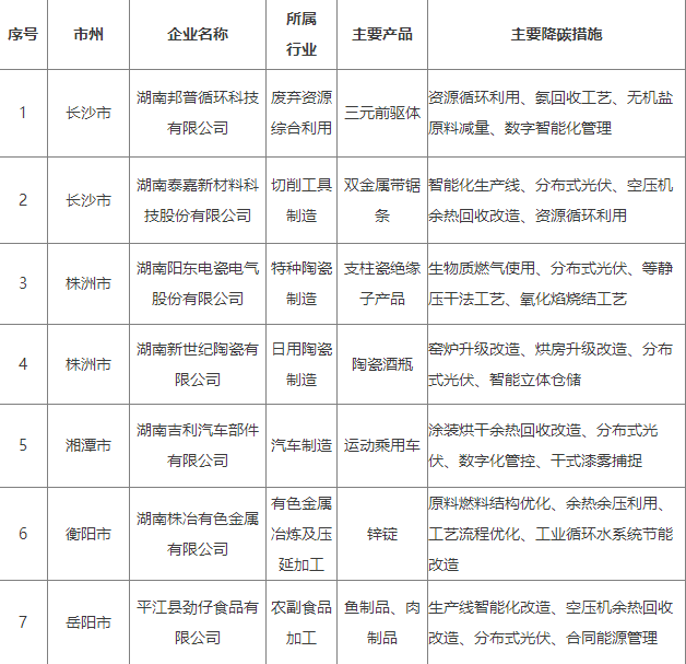附件:2024年湖南省工业碳减排标杆企业拟认定名单