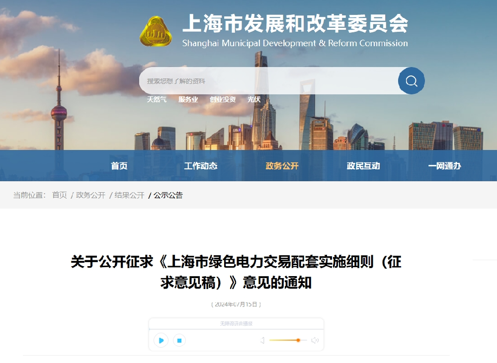 关于公开征求《上海市绿色电力交易配套实施细则(征求意见稿)》意见的通知