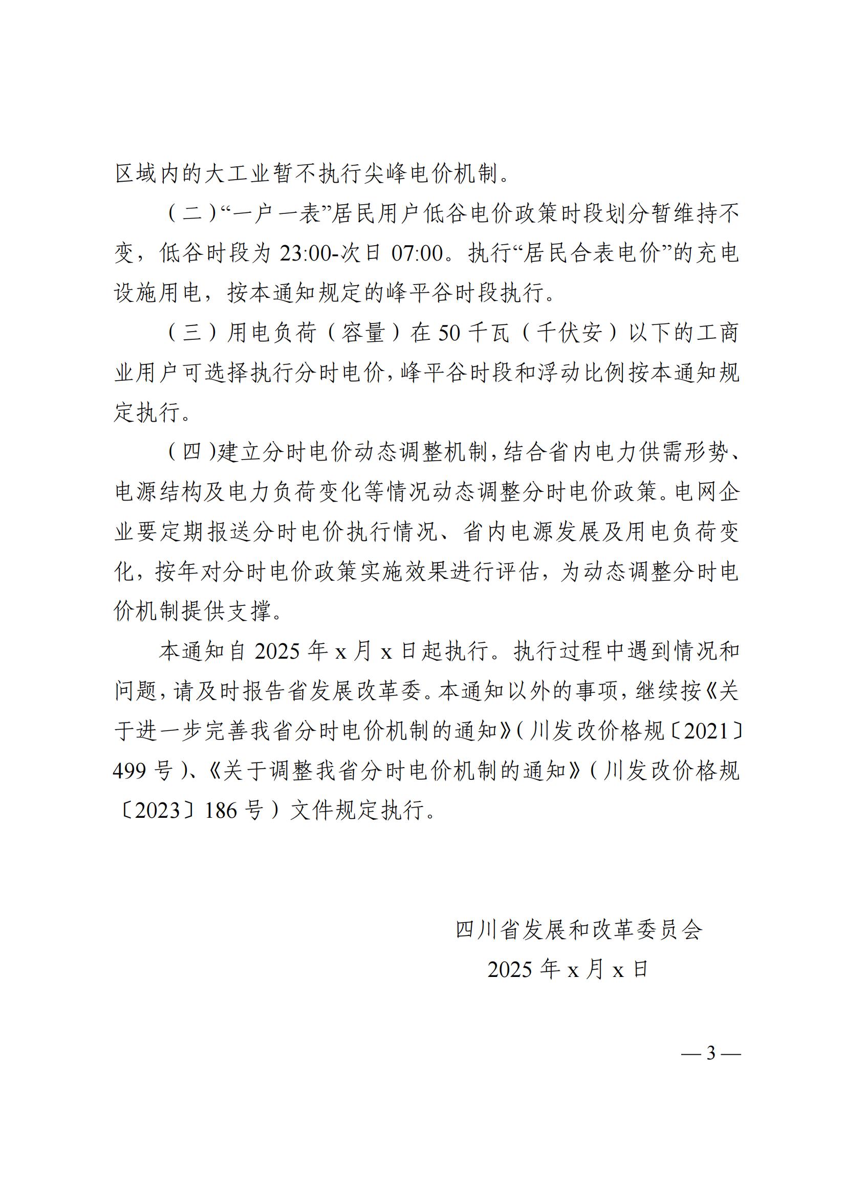 2月7日,四川省发展改革委就《关于进一步调整我省分时电价机制的通知(征求意见稿)》公开征求意见,其中提到,根据不同季节电力供需形势和负荷特性,按季节对峰平谷时段进行调整。