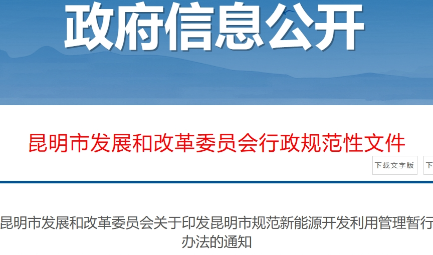 昆明市发展和改革委员会关于印发昆明市规范新能源开发利用管理暂行办法的通知