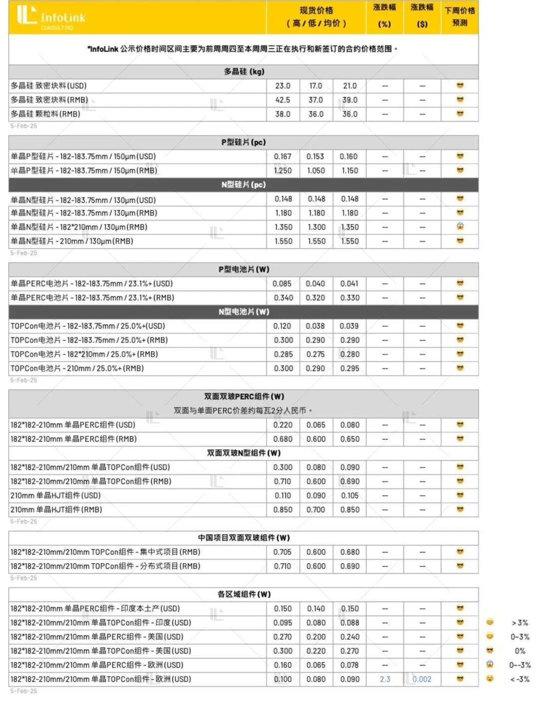1. 硅片、电池、组件因应市场变化,取消210P价格公示,硅片添加183N海外美元价格公示