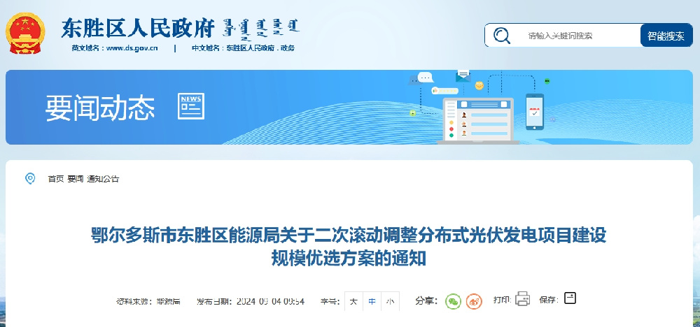 鄂尔多斯市东胜区能源局关于二次滚动调整分布式光伏发电项目建设规模优选方案的通知