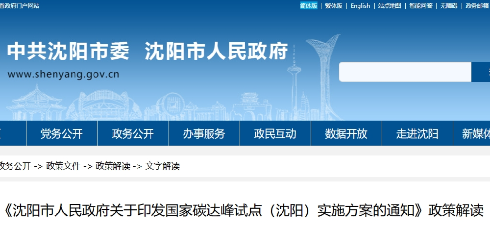 沈阳市人民政府关于印发国家碳达峰试点(沈阳)实施方案的通知