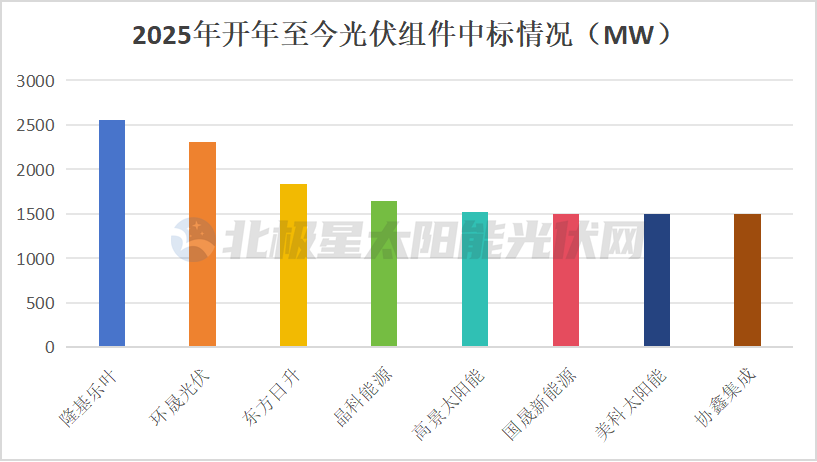 在19GW定标规模中,可明确中标规模的占比约88%,中标量达到1500MW以上的企业包括隆基、环晟、东方日升、晶科能源等。