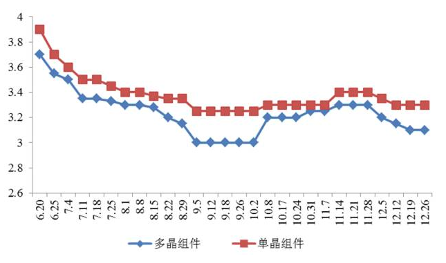 但抢装潮过后,随着需求骤减光伏组件价格也将迎来极大挑战,再看2016年“6·30”,抢装潮后组件价格出现快速下跌。
