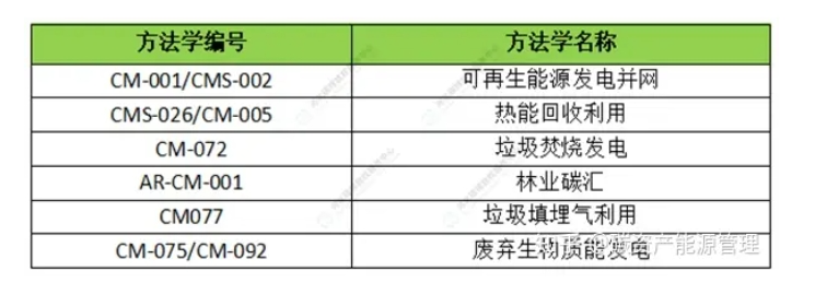 CCER项目主要开发方法学