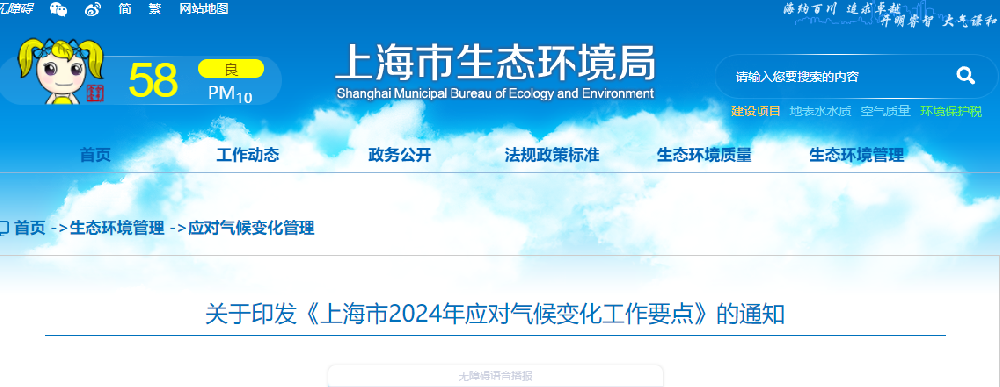 为有序推进本市应对气候变化工作,实现减污降碳协同增效,我局制定了《上海市2024年应对气候变化工作要点》。现印发给你们,请结合工作实际抓好落实。