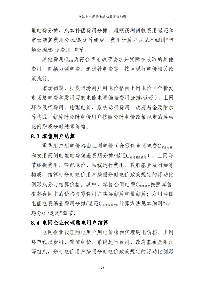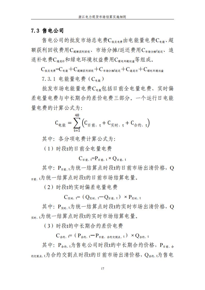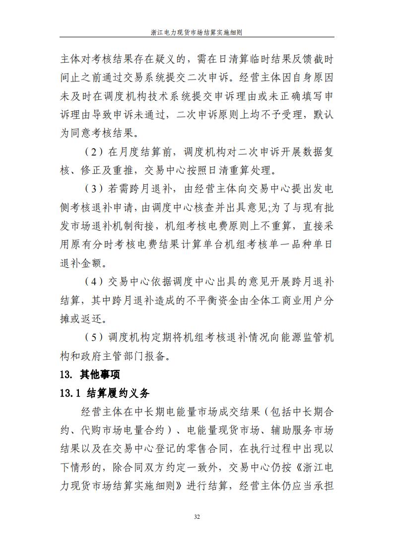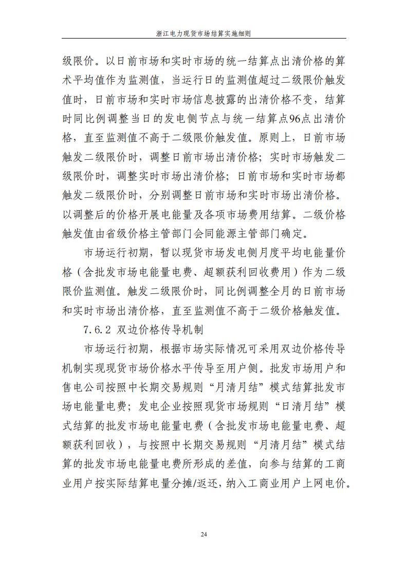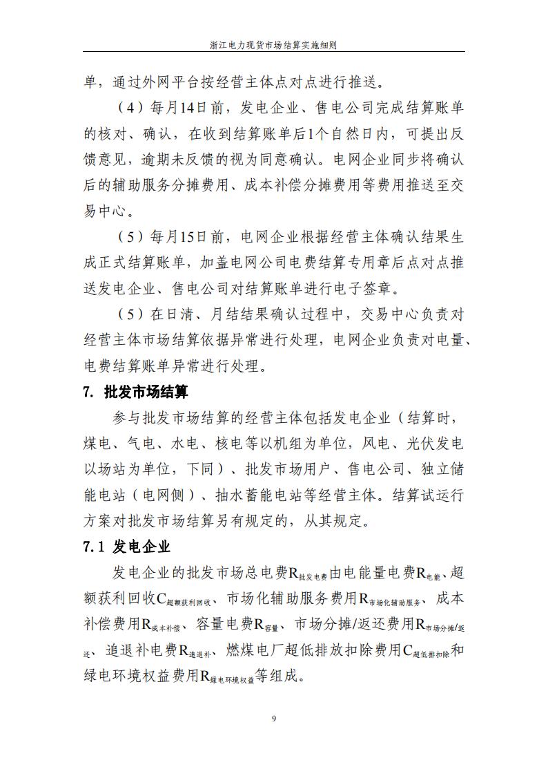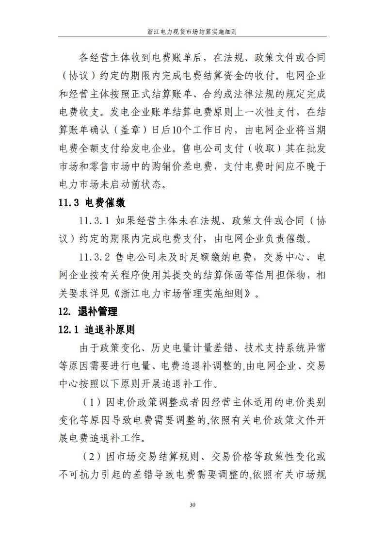 4月9日,浙江电力交易中心公布《浙江电力现货市场结算实施细则》,本细则适用于浙江电力现货市场结算,主要内容包括:结算原则、计量、电费结算流程、批发市场结算、零售市场及终端用户结算、辅助服务费用结算、市场分摊/返还费用计算、电费支付流程、退补管理及其他事项等。