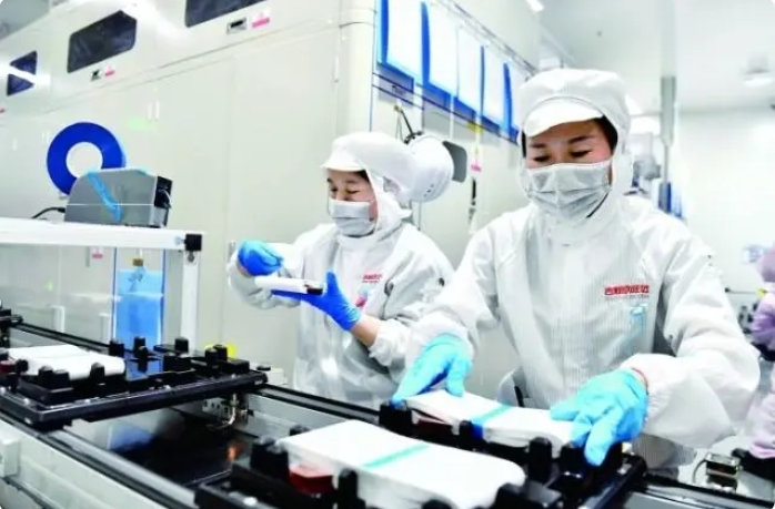 在山东吉利欣旺达动力电池有限公司,工作人员在锂电池生产线忙碌 新华社图