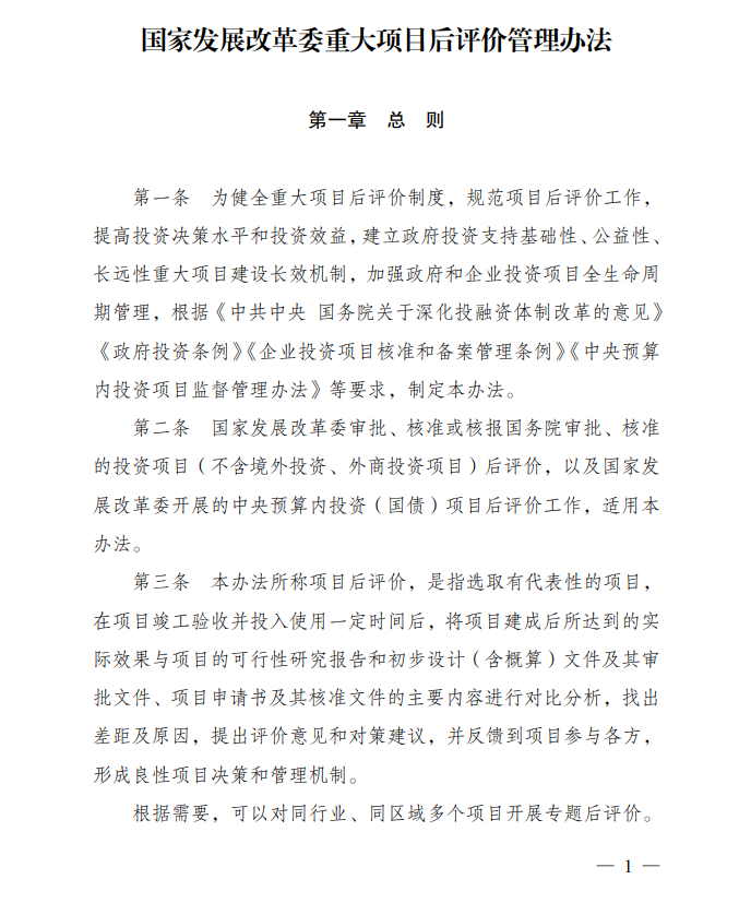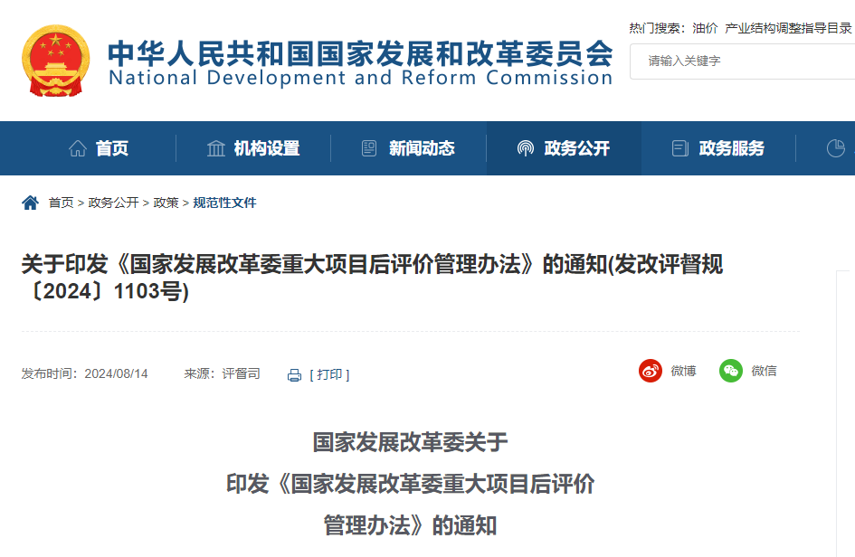 8月14日,国家发展改革委发布关于印发《国家发展改革委重大项目后评价管理办法》(以下简称《办法》)的通知。