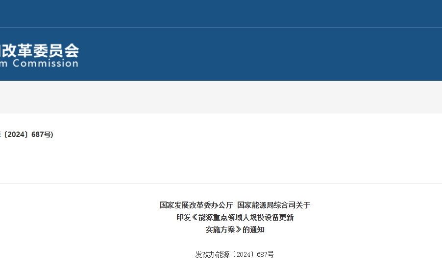 为贯彻落实国务院《推动大规模设备更新和消费品以旧换新行动方案》(国发〔2024〕7号),推动能源重点领域大规模设备更新和技术改造,国家发展改革委、国家能源局组织编制了《能源重点领域大规模设备更新实施方案》。现印发给你们,请认真组织实施。