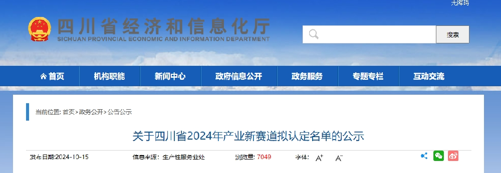 为深入贯彻全国新型工业化推进大会和省委十二届三次、四次、五次、六次全会精神,大力实施六大优势产业提质倍增行动,积极开辟发展新领域新赛道,加快培育壮大新质生产力,根据《四川省产业新赛道争先竞速行动计划(2023-2027年)》(川经信规划〔2023〕233号),我厅联合财政厅组织开展了四川省2024年产业新赛道征集工作。经市(州)申报、专家评审等程序,现将四川省2024年产业新赛道拟认定名单予以公示。