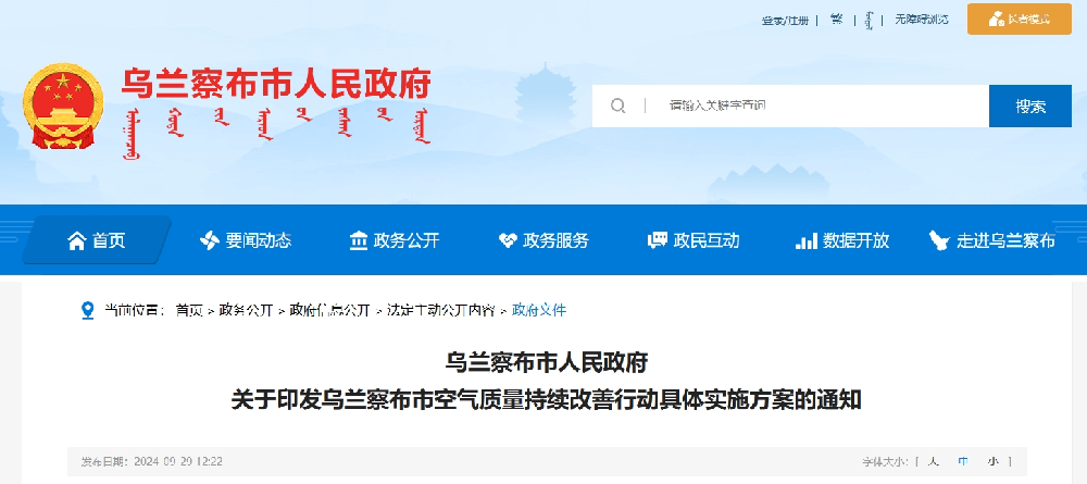 近日,内蒙古乌兰察布发布《乌兰察布市空气质量持续改善行动具体实施方案》。全文如下: