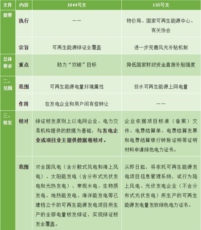 绿证的特点 明确国家能源局负责绿证相关管理工作,通过统筹各方面形成合力,进一步提升绿证的权威性,推动绿证在引领绿色电力消费、促进可再生能源发展、实现双碳目标中发挥更大作用。 明确绿证是我国可再生能源电量环境属性的唯一证明也是认定可再生能源电力生产、消费的唯一凭证。绿证对应电量不得重复申领电力领域其他同属性凭证。 明确绿证支撑绿色电力交易、认定绿色电力消费、核算可再生能源电力消费量等基础性作用同时推动绿证与国内碳市场、国际绿色消费和碳减排体系做好衔接。 08 绿证的应用场景 在2017 年“132 号文件”中,绿证的应用场景仅限于为消费绿色电力提供证明。本次《通知》则对绿证支撑绿色电力交易、核算可再生能源消费、认证绿色电力消费,以及衔接碳市场、推动绿证国际互认提出了具体要求,极大地拓展了绿证应用场景,为绿证市场需求提供支撑。 绿电交易作为“证电合一”的特殊绿证交易形式,通过在交易合同或双边协商约定中明确的绿证价格体现绿色环境价值。电力用户通过绿证单独交易和绿电交易获得的绿证是一样的,都代表完成了绿色电力消费。 目前,国家发展改革委、国家能源局联合印发《关于2023年可再生能源电力消纳责任权重及有关事项的通知》,明确各承担消纳责任的市场主体权重完成情况以自身持有的绿证为主要核算方式。 以绿证作为电力用户绿色电力消费和绿电属性标识认证的唯一凭证,通过两年内的绿证开展绿色电力消费认证,建立基于绿证的绿色电力消费认证标准、制度和标识体系。 研究推进绿证与全国碳排放权交易机制、温室气体自愿减排交易机制的衔接协调,推动将绿证纳入碳市场相关核算体系。 我国可再生能源电量原则上只能申领核发国内绿证。在不影响国家自主贡献目标实现的前提下,积极推动国际组织的绿色消费、碳减排体系与国内绿证衔接。加强绿证核发、计量、交易等国际标准研究制定。 09 最新消息:加快编制 绿证核发和交易规则 国家能源局新能源司副司长王大鹏表示,绿电消费既可通过单独购买绿证以“证电分离”方式实现,也可通过同步购买可再生能源电力及相应绿证以“证电合一”方式实现。 发电项目发了绿电,核发机构会根据上网电量直接核发绿证,核发绿证通过绿证的交易平台可以开展交易。绿电消费需求的用户、企业可以通过绿证交易平台开展交易,购买绿证,证明自己消费了绿色电力。 王大鹏表示,下一步,国家能源局将抓好《通知》的落地实施,一是加快编制绿证核发和交易规则,二是指导相关的交易机构完善绿证交易细则。 国家能源局还将抓紧组织对2022年全部可再生能源电量核发绿证,激发绿色电力消费活力,推动全社会绿色电力消费水平不断提升。 10 绿证新版VS旧版 《关于做好可再生能源绿色电力证书全覆盖工作促进可再生能源电力消费的通知(发改能源〔2023〕1044号)》与《关于试行可再生能源绿色电力证书核发及自愿认购交易制度的通知(发改能源〔2017〕132号)》相比有什么具体变化?小编进行了综合整理,详情见下表。