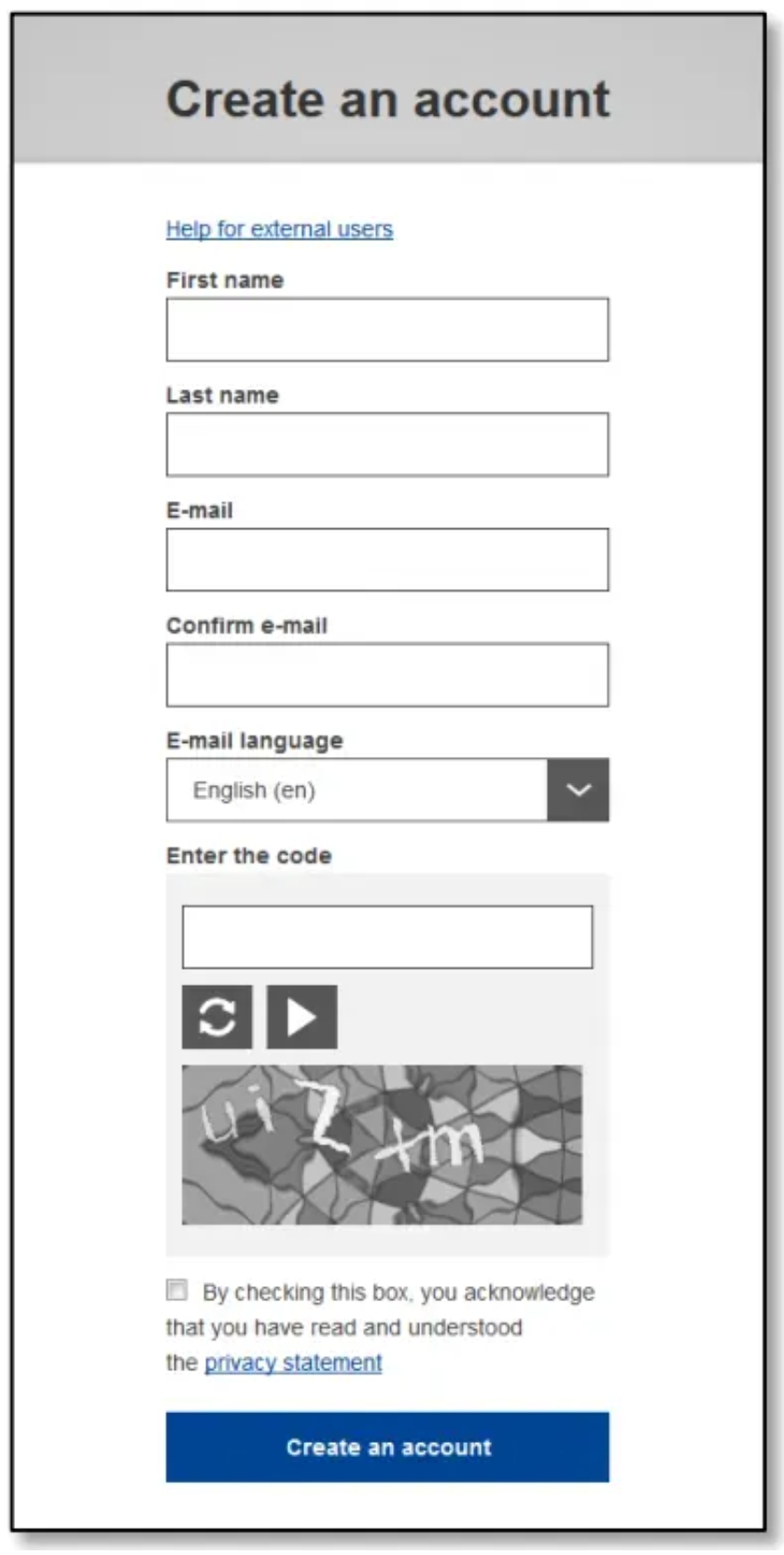 打开浏览器,访问欧盟登录的注册页面:https://webgate.ec.europa.eu/cas/login。