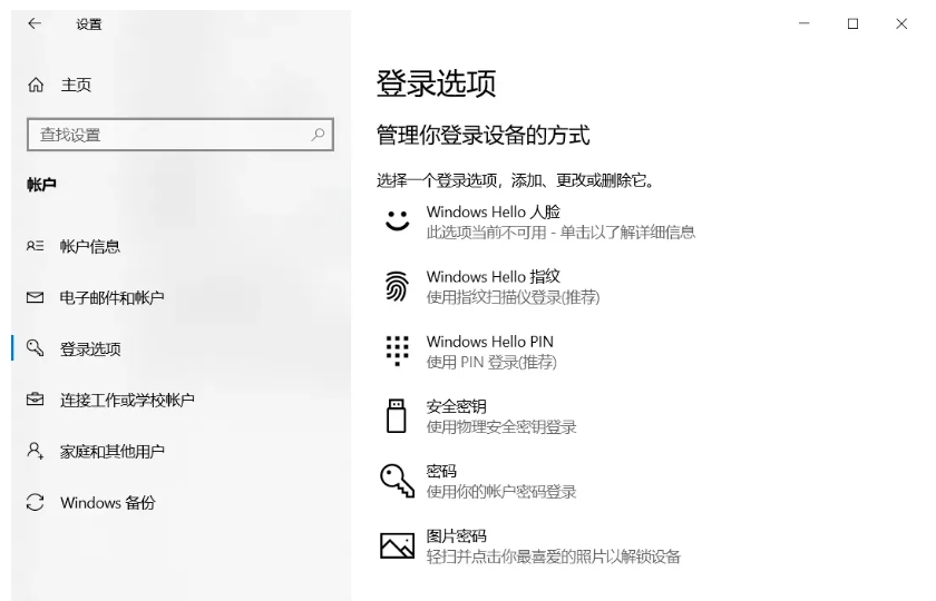 ①检查电脑登录方式是否设置了PIN登录或者指纹、面部识别登录的方式,若没有设置打开电脑设置—账户—登录选项—选择“PIN”或“指纹”、“人脸”登录方式,作者本身只尝试了PIN登录,大家可以参考这种方式。注意仅有密码登录电脑是无法与EU账户登录联动的。