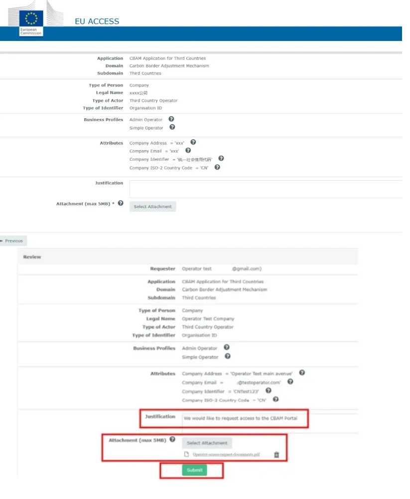 环节三:进入CBAM门户网页,进行欧盟准入申请
