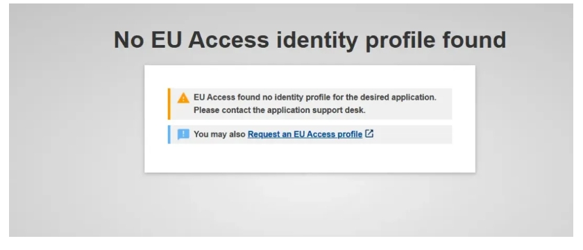 之后网页会收到一条消息,指示找不到“无欧盟访问权限的身份资料”。此时单击 “请求欧盟访问权限”