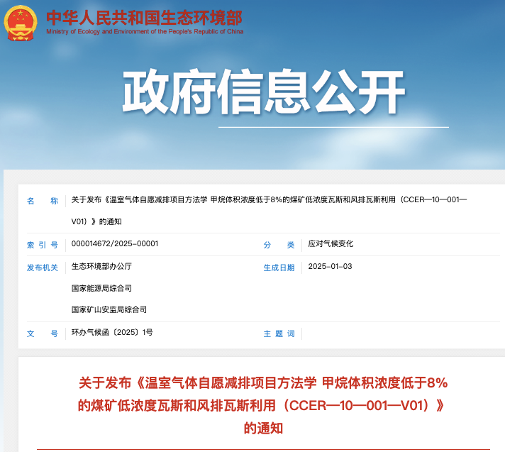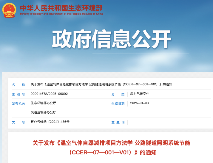近日,生态环境部与国家能源局、国家矿山安监局联合发布《温室气体自愿减排项目方法学 甲烷体积浓度低于8%的煤矿低浓度瓦斯和风排瓦斯利用(CCER—10—001—V01)》(以下简称《煤矿低浓度瓦斯和风排瓦斯利用方法学》),与交通运输部联合发布《温室气体自愿减排项目方法学 公路隧道照明系统节能(CCER—07—001—V01)》(以下简称《公路隧道照明节能方法学》,明确了符合条件的煤矿低浓度瓦斯和风排瓦斯利用项目、公路隧道照明系统节能项目开展自愿减排项目设计、实施、审定,减排量核算核查等工作要求。