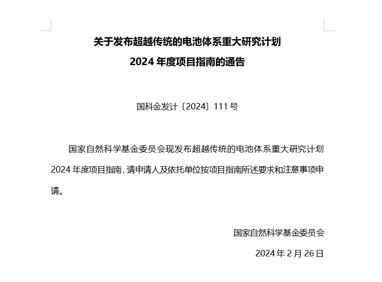 【课题】超越传统的电池体系重大研究计划2024年度项目指南.docx