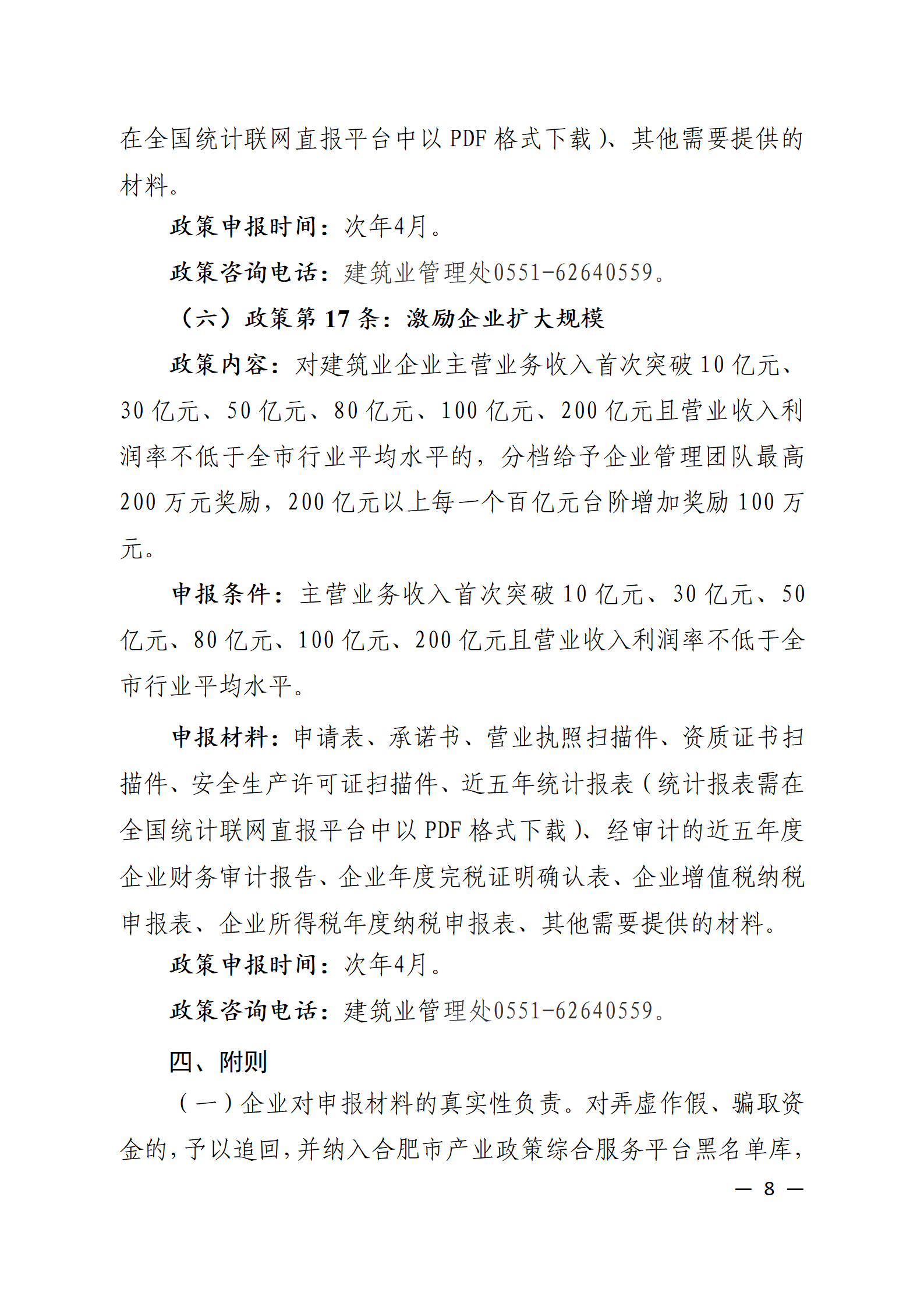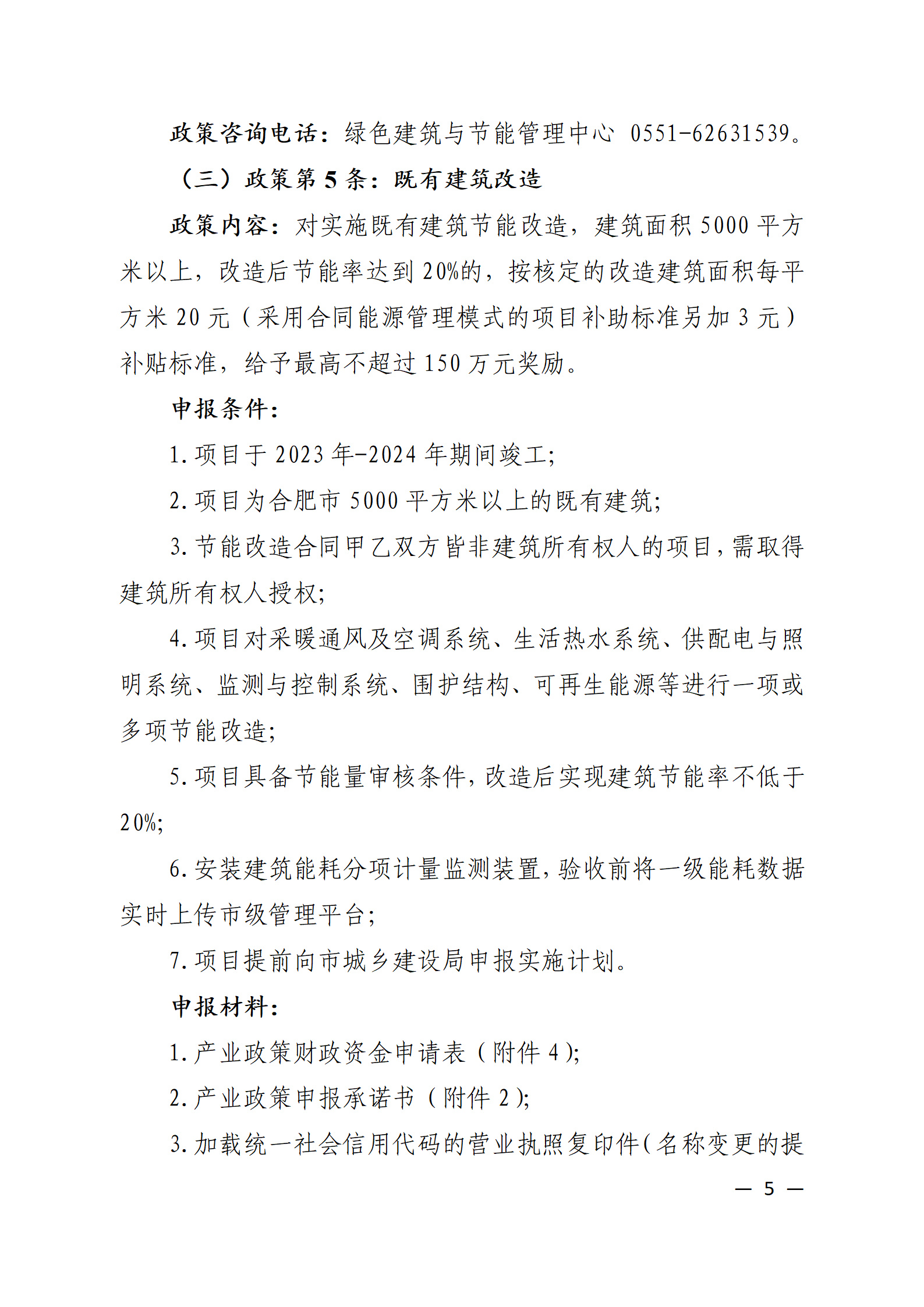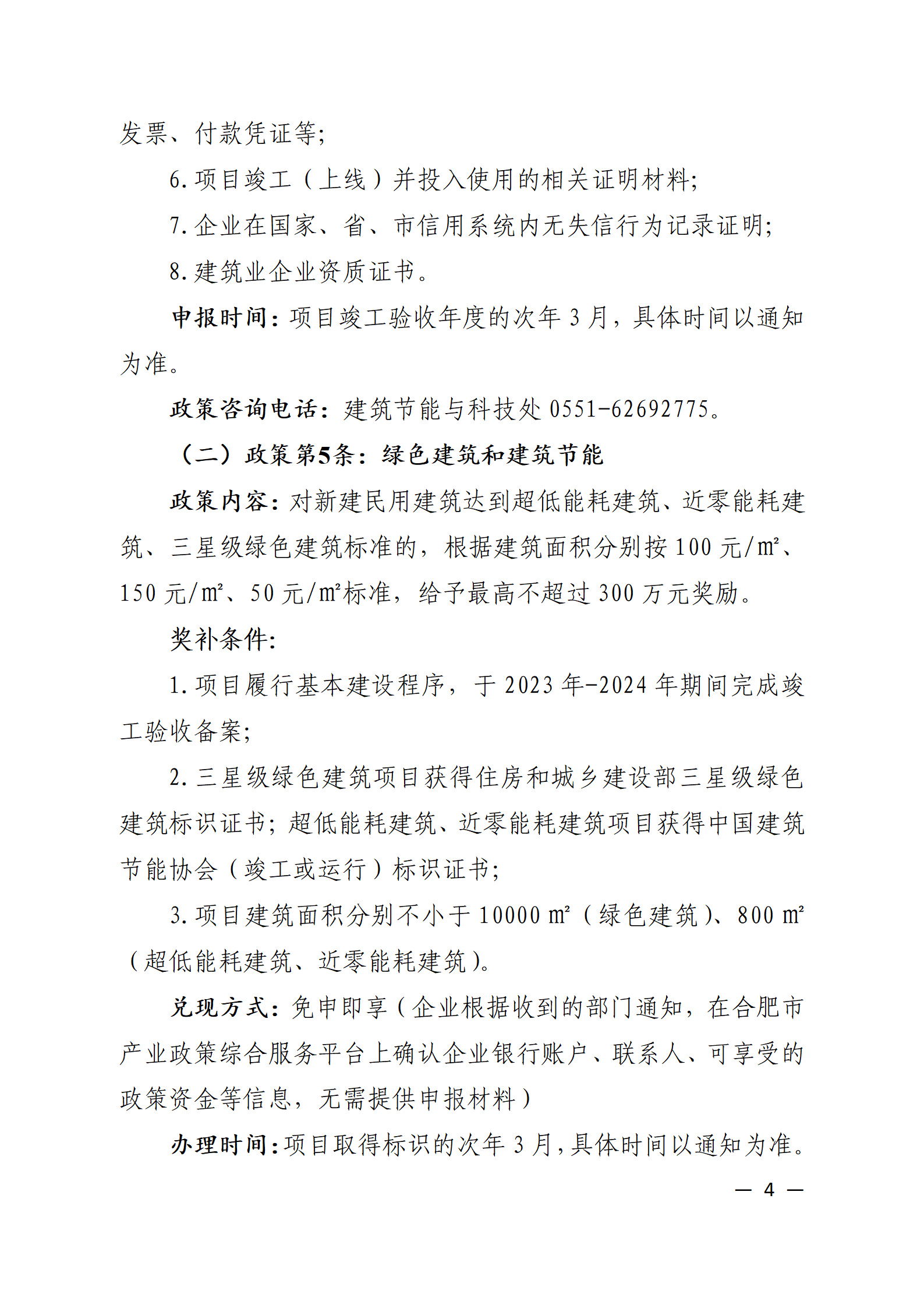 按照《合肥市人民政府办公室关于印发〈合肥市促进经济发展若干政策〉的通知》(合政办〔2023〕7号)和《关于印发〈合肥市促进经济发展若干政策实施细则(城乡建设部分)〉的通知》(合建〔2023〕50号)的要求,现将部分政策奖补资金申报工作有关事项通知如下:
