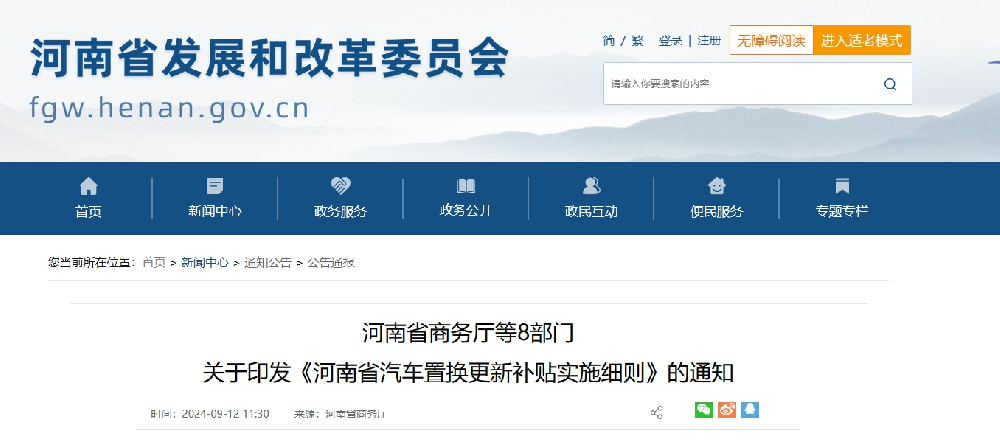 9月12日,河南省商务厅等8部门印发《河南省汽车置换更新补贴实施细则》(以下简称《细则》)的通知。