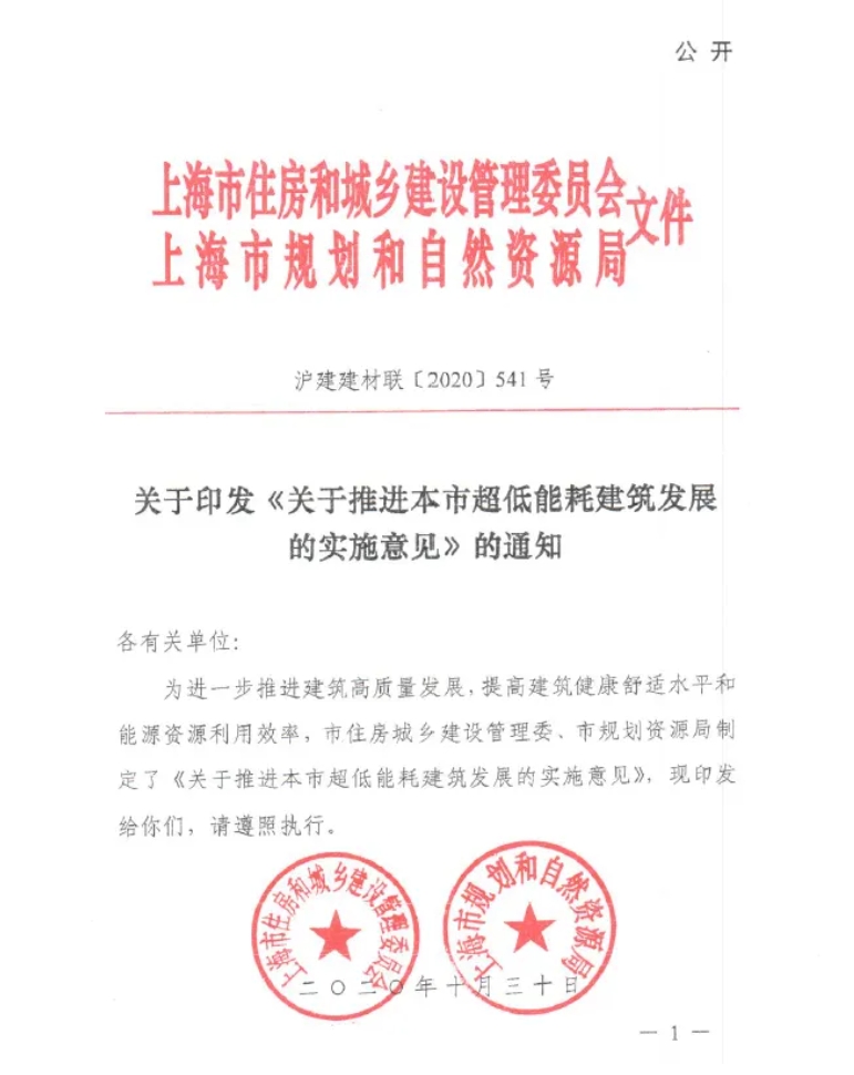 为进一步推进建筑高质量发展,提高建筑健康舒适水平和能源资源利用效率,市住房城乡建设管理委、市规划资源局制定了《关于推进本市超低能耗建筑发展的实施意见》,现印发给你们,请遵照执行。