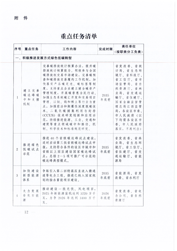 日前,中共江西省委 江西省人民政府印发《关于全面推进美丽江西建设的实施意见》,提出积极稳妥推进碳达峰碳中和等19项措施,将从五条路径来推进,包括积极推进发展方式绿色低碳转型、持续深入推进污染防治提升攻坚、全面提升生态系统多样性稳定性持续性、推进美丽中国“江西样板”示范建设、健全美丽江西建设保障机制。