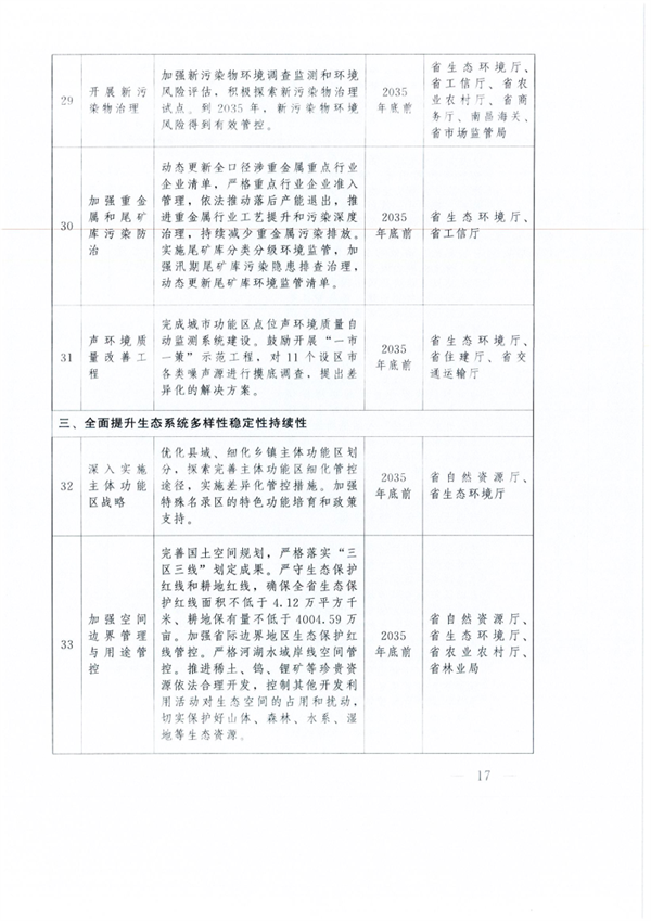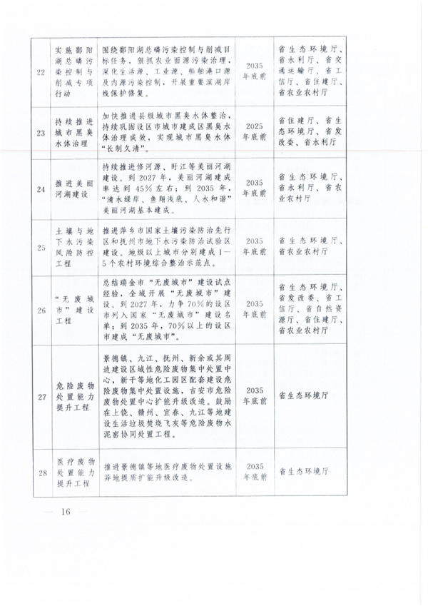 《实施意见》明确,江西省将推进大气环境精细化管控、城镇生活污水收集处理提质增效工程,实施鄱阳湖总磷污染控制与削减专项行动,全域开展“无废城市”建设,推进重金属行业工艺提升和污染深度治理。