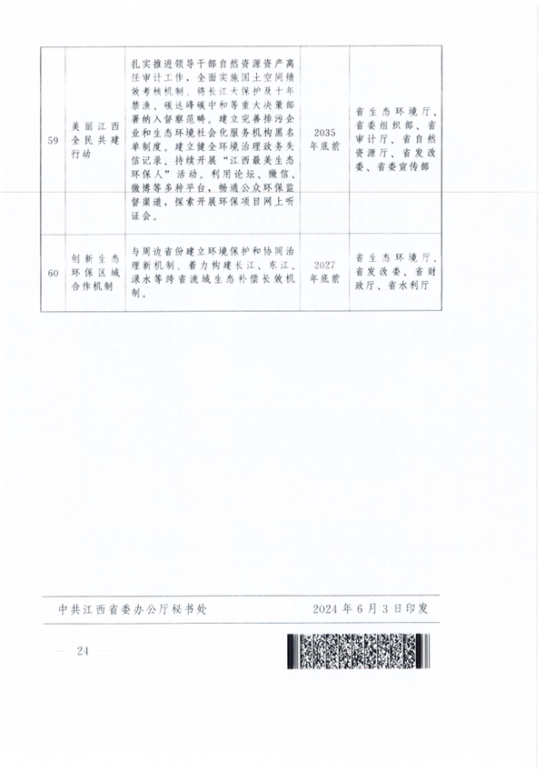 (十九)开展全民行动。繁荣赣鄱生态文化,深化美丽江西建设的典型案例总结、宣传教育和实践推广。大力开展世界环境日、全国生态日、省生态文明宣传月等多种形式的宣传活动,加快形成全民生态自觉,倡导城乡居民绿色低碳、文明健康的生活方式和消费方式。构建多元行动体系,健全环境公众参与和监督机制,充分发挥行业协会商会桥梁纽带和群团组织、文学艺术界广泛动员作用,持续开展“美丽中国,我是行动者”系列活动。