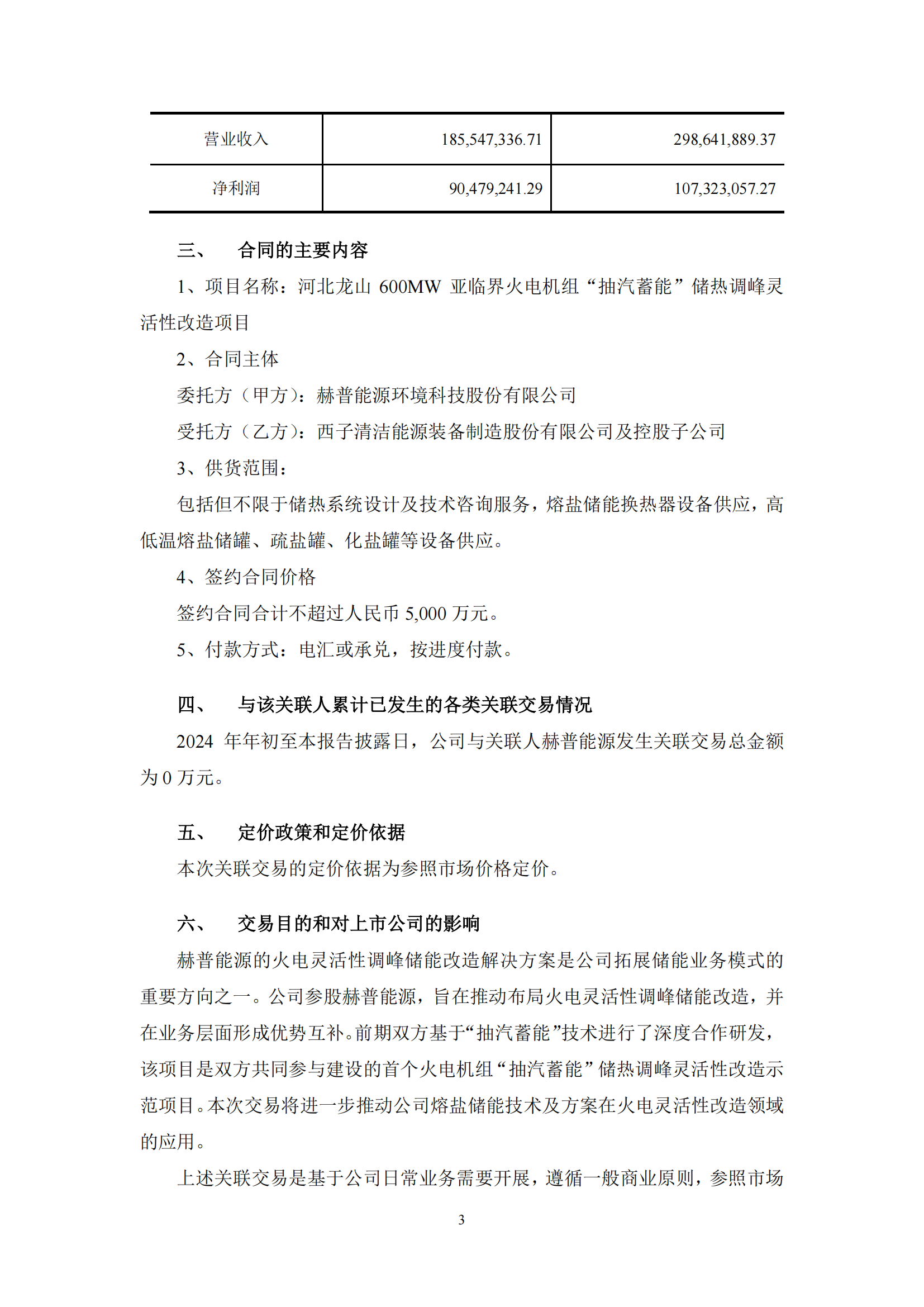 西子洁能声称,赫普能源的火电灵活性调峰储能改造解决方案是公司拓展储能业务模式的重要方向之一。公司参股赫普能源,旨在推动布局火电灵活性调峰储能改造,并在业务层面形成优势互补。前期双方基于“抽汽蓄能”技术进行了深度合作研发,该项目是双方共同参与建设的首个火电机组“抽汽蓄能”储热调峰灵活性改造示范项目。本次交易将进一步推动公司熔盐储能技术及方案在火电灵活性改造领域的应用。